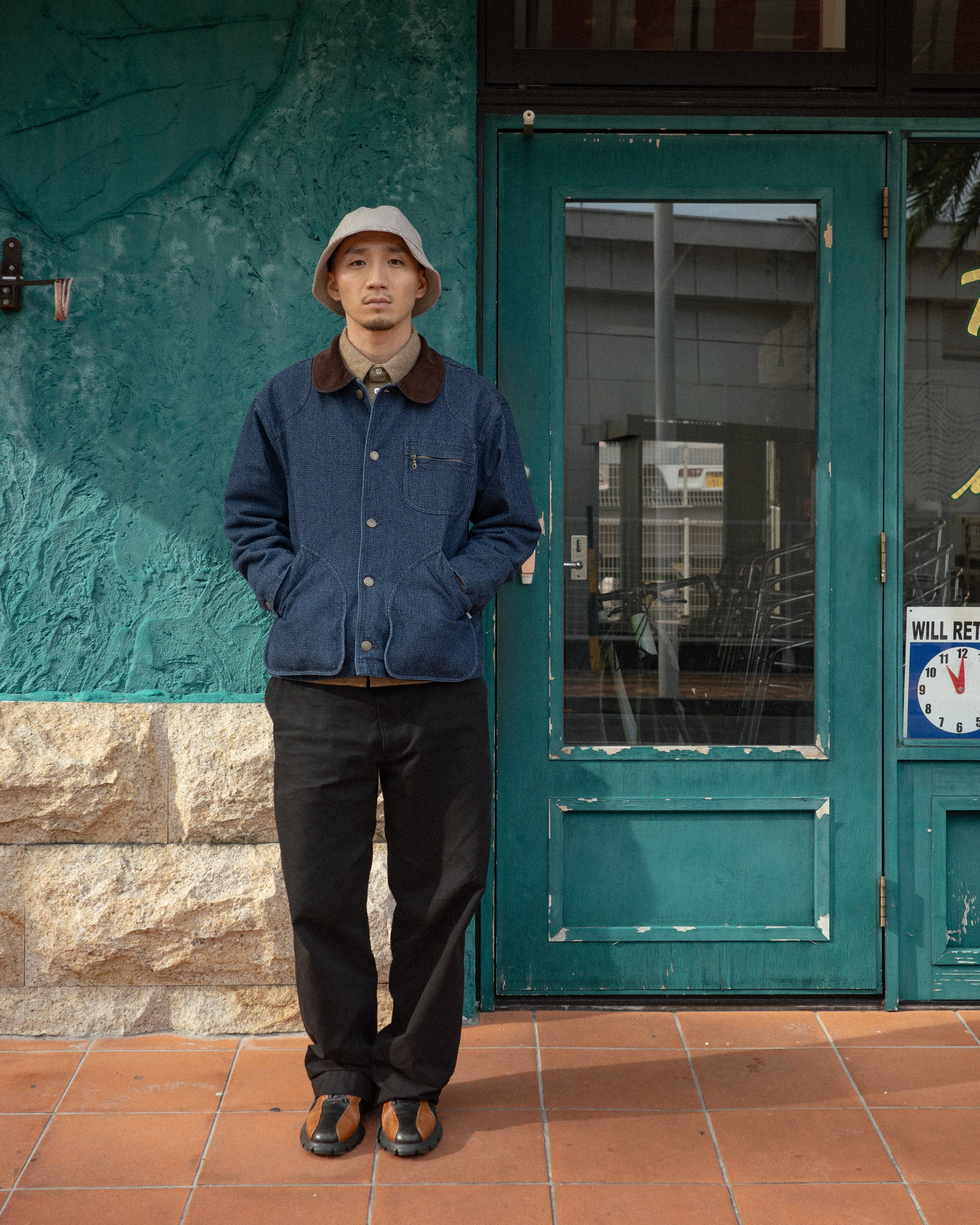 Beige、Black、Denimのヘリンボンの3色展開、Beige、Blackはダック生地です。