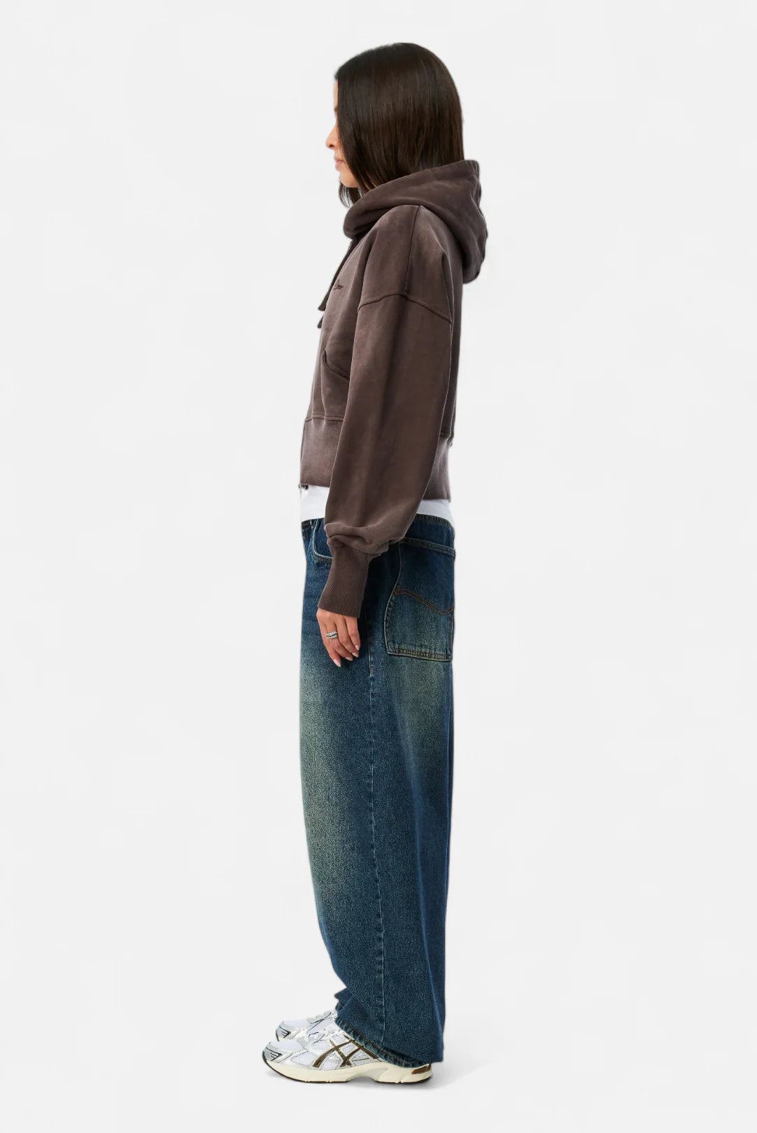 CROPPED ZIP HOODIE - Brown Washed / XSmall