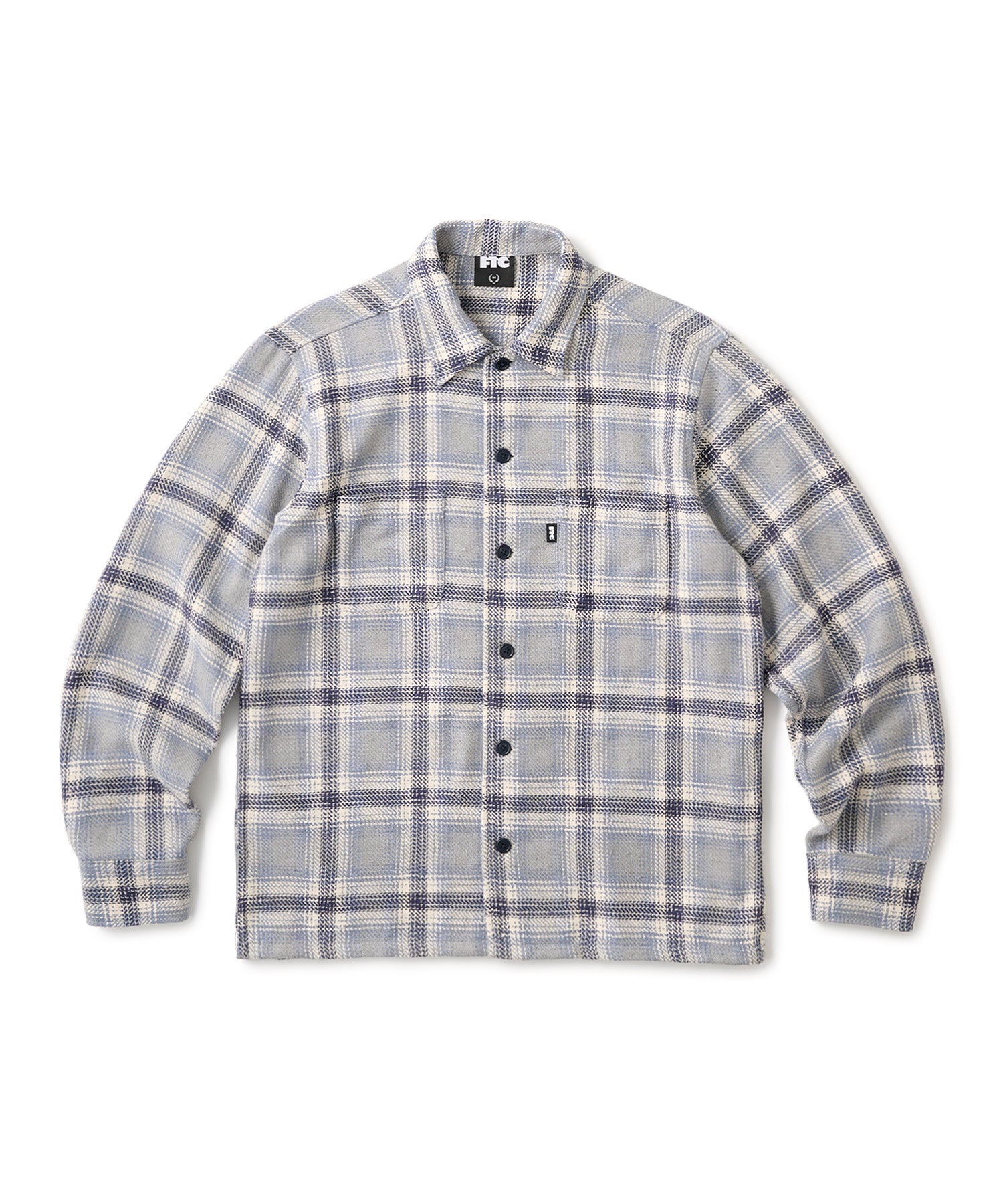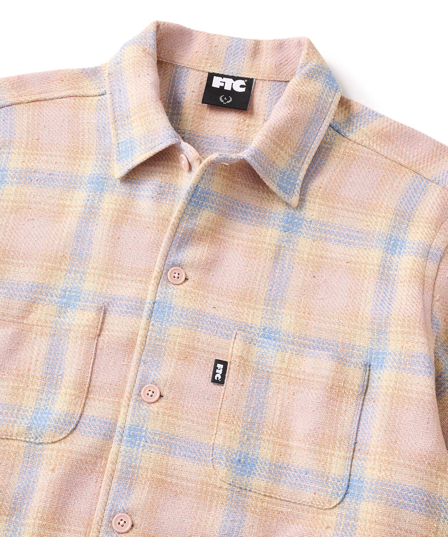 【ディテール】・甘織りのネップコットン/ポリエステル混チェックを使用したシャツ。・左胸ポケットにピスネーム。