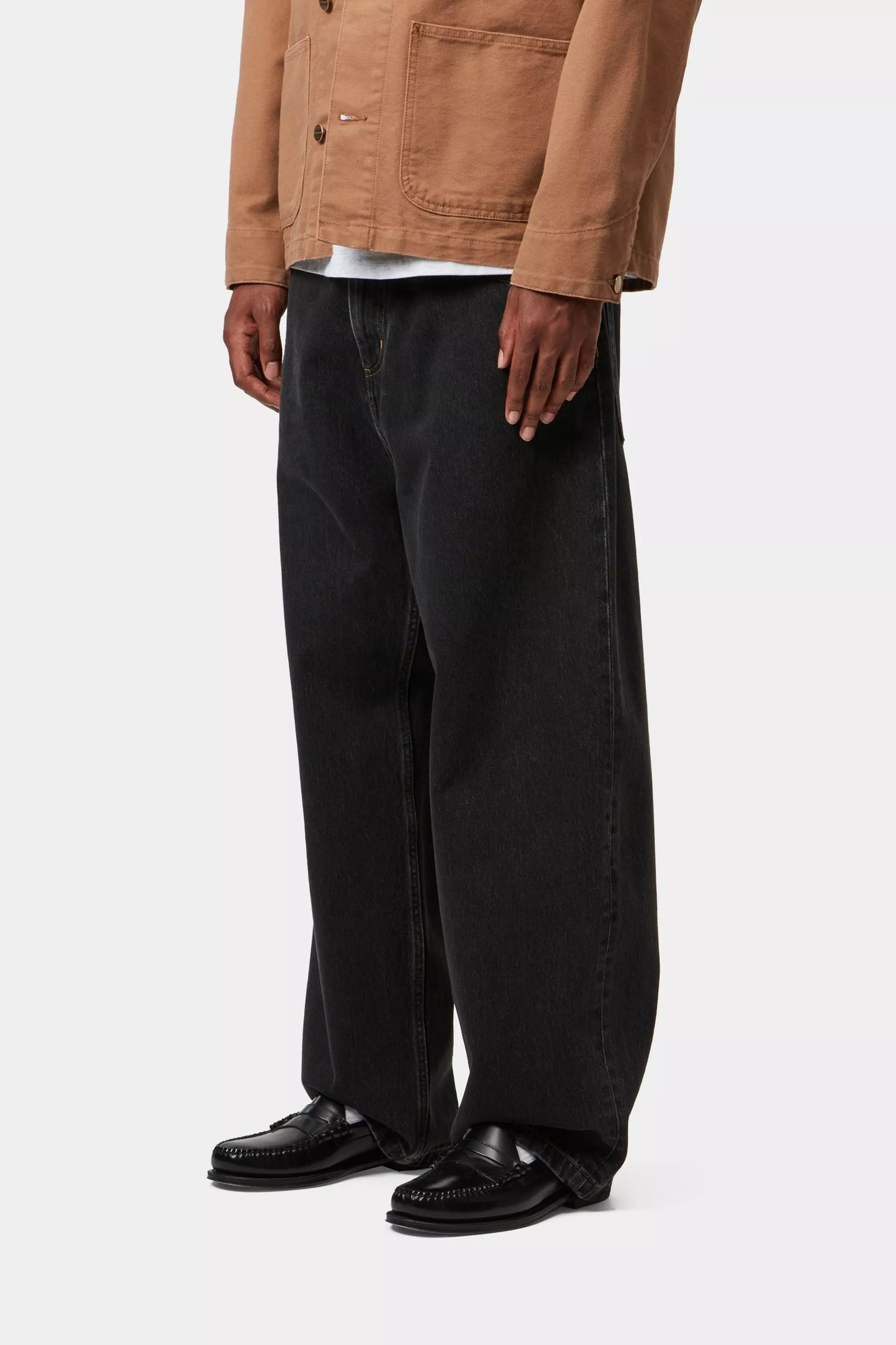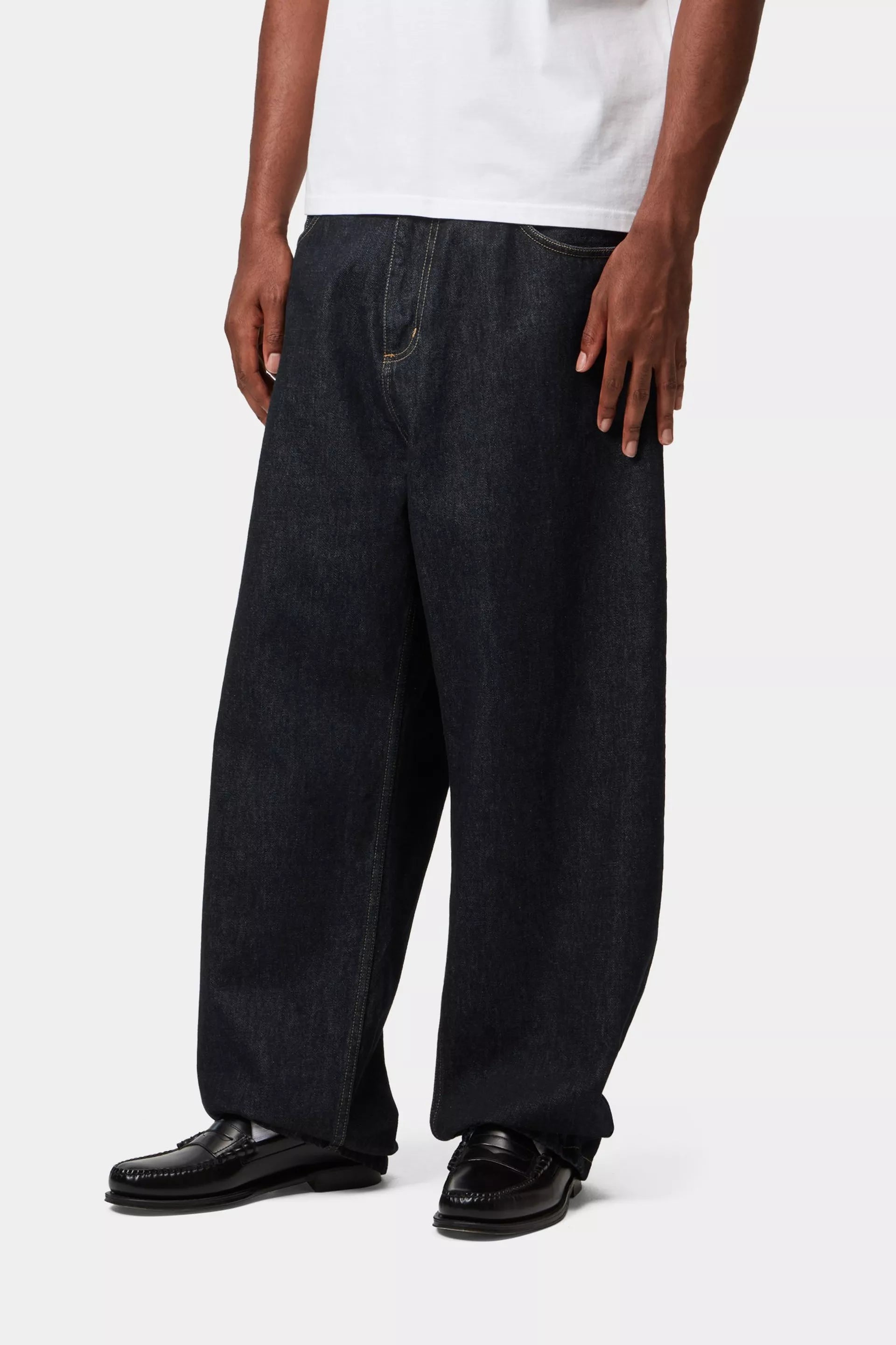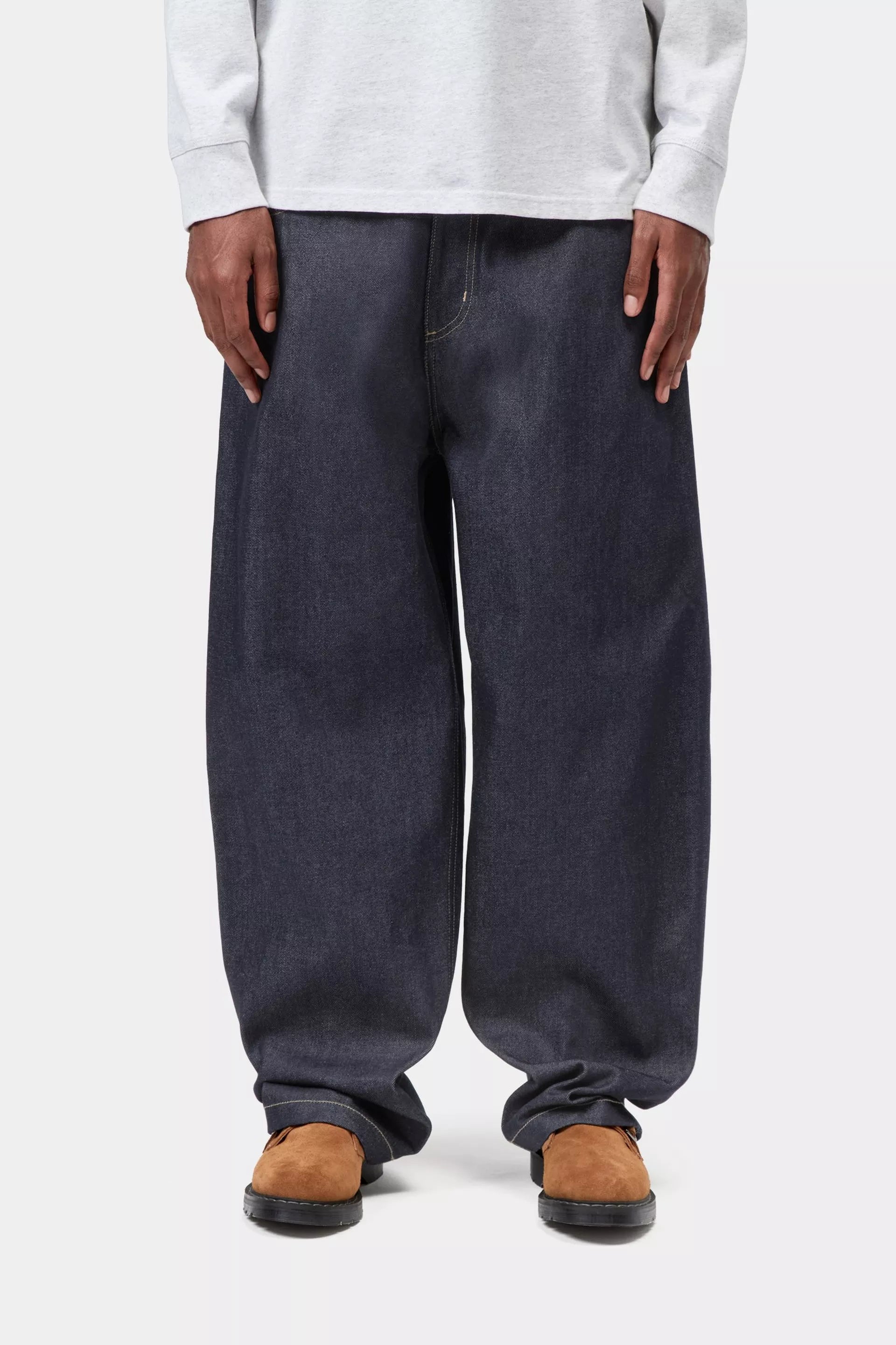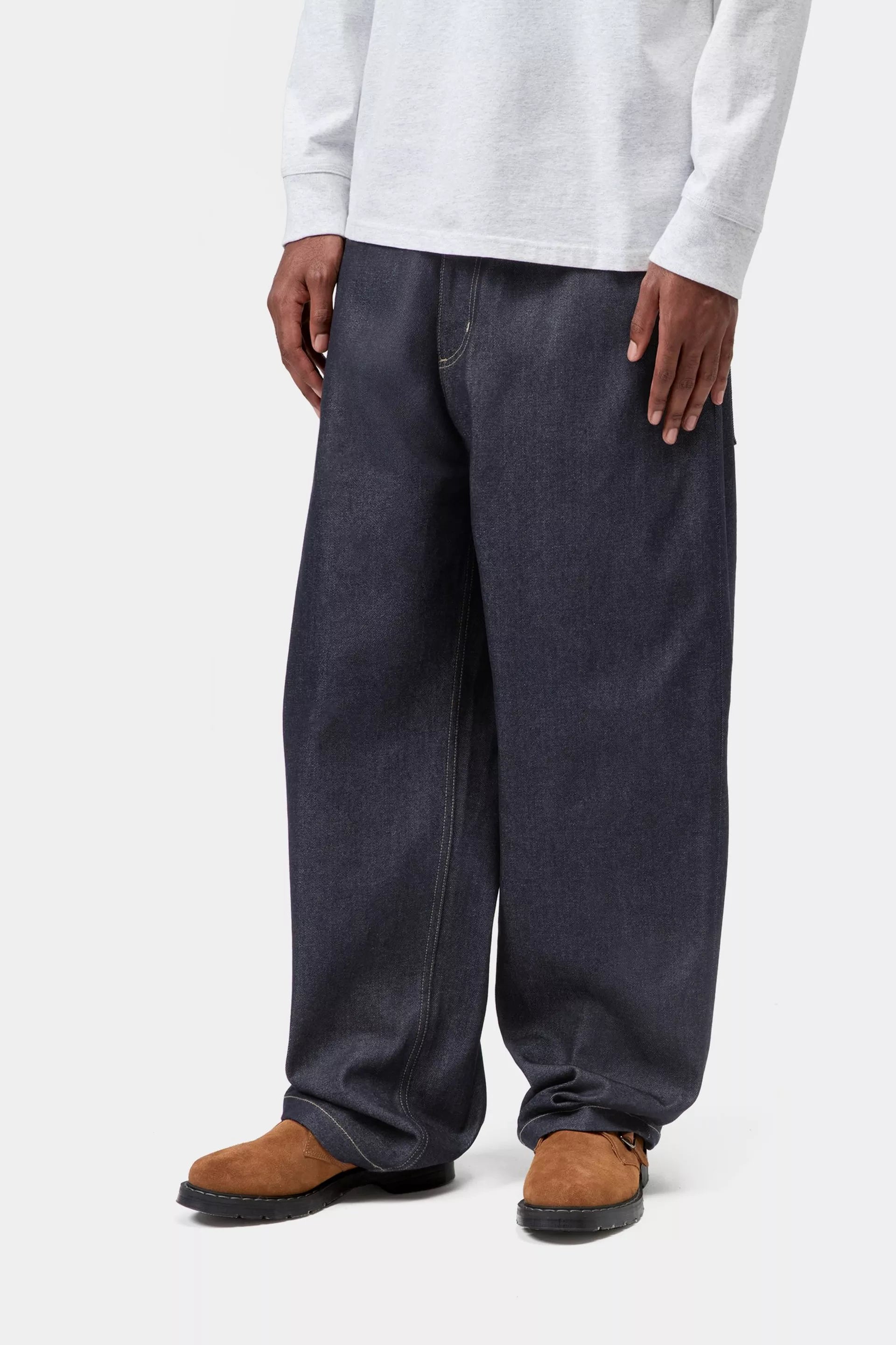 重厚なコットン生地であるSmithデニムから作られた、ロークロッチのルーズストレートフィットです。
