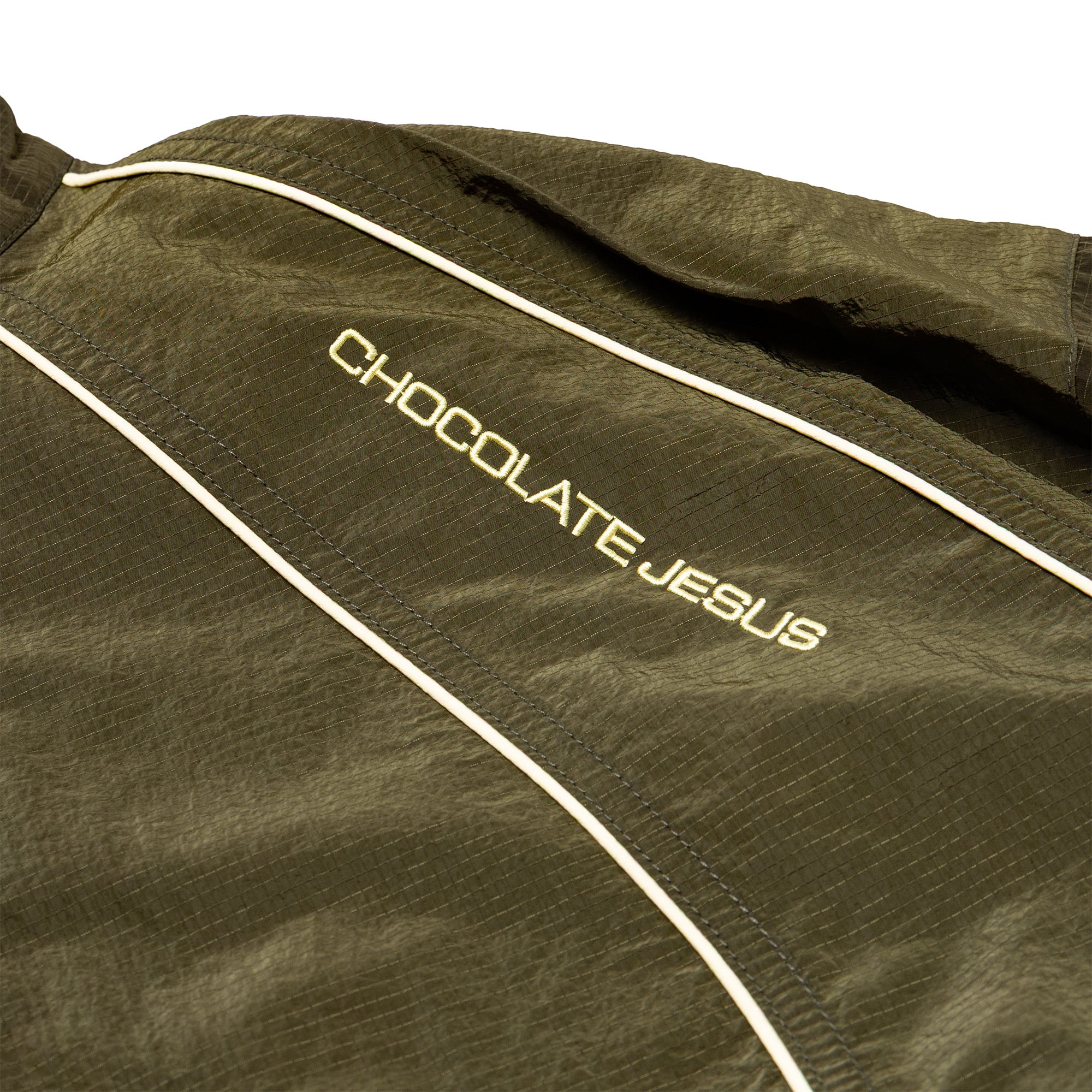 ジャケットのジップには、Chocolate Jesus の “C” ロゴを刻んだオリジナルの引き手を使用。